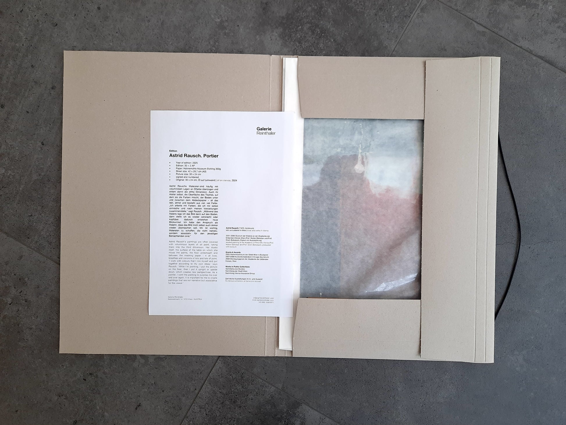 Astrid Rausch's paintings are often covered with voluminous layers of oil paint, taking them into the third dimension. Her studio itself, the surface of the table on which she mixes the paints, the floor underneath and between the masking paper - it all lives, breathes and consists of lots and lots of paint. 'I work with colours that I mix myself and put together according to my own ideas,' says Rausch (* 1975 Innsbruck, lives and works in Vienna). 'While I'm painting, I put the picture on the floor, then I put it upright or upside down, which creates new perspectives. As a painter, I want the painting to surprise me over and over again. It is important for me to create paintings that are not narrative but associative for the viewer.'